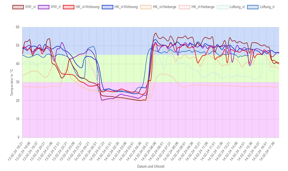 Dank der Mesh Technologie können grosse Heizungsräume innerhalb von ein paar Stunden umgerüstet und überwacht werden. Das Monitoring kann im Dauerbetrieb über 3 Monate Daten aufzeichnen und die Funktionalität der Anlage sicherstellen. In verschiedensten Jugendherbergen und Hotels konnten Fehler erkannt werden. Was der Umwelt und der Geldbörse unserer Kunden hilft.